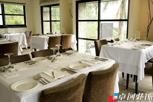 餐廳裝修中要注重地板的裝修設(shè)計(jì),地面要選擇易清潔的材料,盡量不要使用地毯。地磚和木地板是很適合的。不潔凈的地板會直接影響餐廳形象。地板的顏色也是有講究的,一定要符合整個餐廳的設(shè)計(jì)風(fēng)格,在挑選地板時要注意防滑。