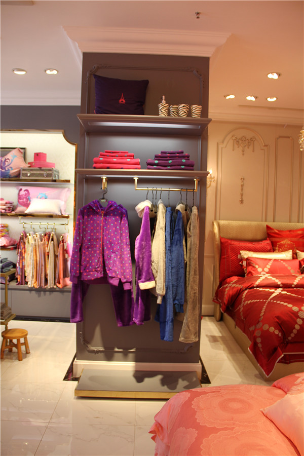 休閑家紡店裝修的閑情逸趣的表現(xiàn),要整體上營(yíng)造一個(gè)輕松的大的環(huán)境,而在細(xì)節(jié)上就是一些比較可愛的小的裝飾品的運(yùn)用,給人最自然清新的感受。